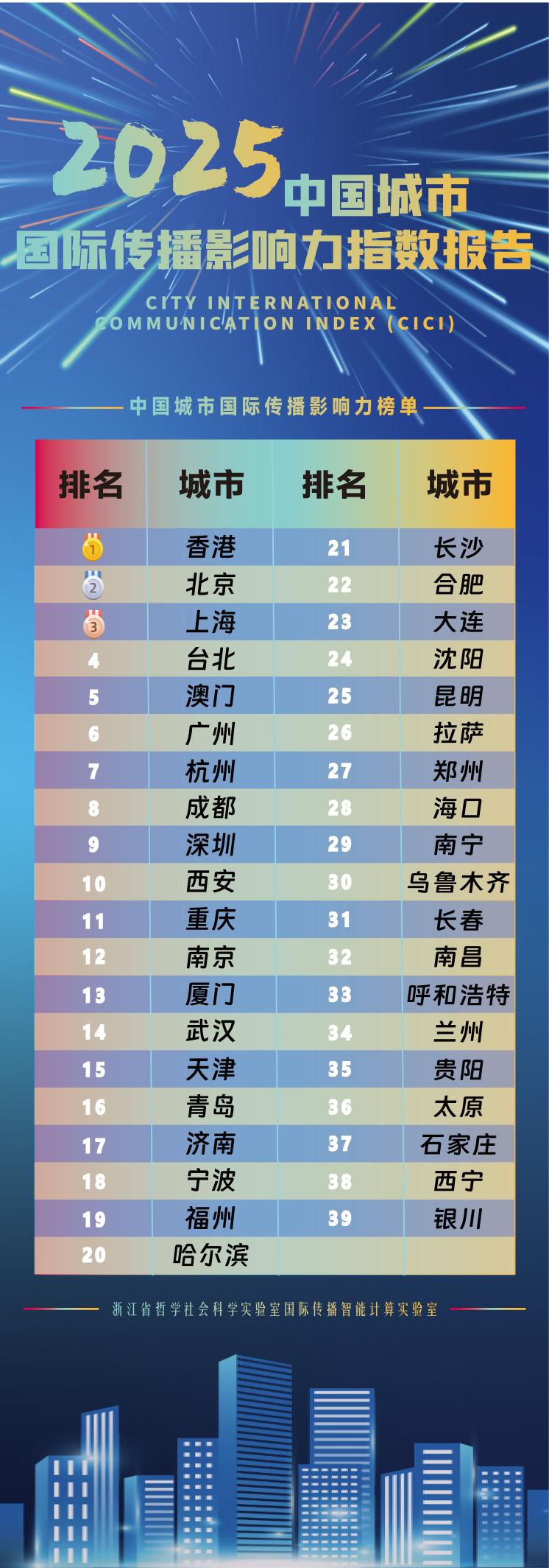 11月9日,《2025中国城市国际传播影响力指数报告》在浙江杭州发布。报告显示,中国国际传播影响力排名前十的城市依次为香港、北京、上海、台北、澳门、广州、杭州、成都、深圳、西安。中国大陆国际传播影响力前十名城市依次为北京、上海、广州、杭州、成都、深圳、西安、重庆、南京、厦门。与去年的内地城市榜单相比,南京和厦门的排名明显上升,进入前十。