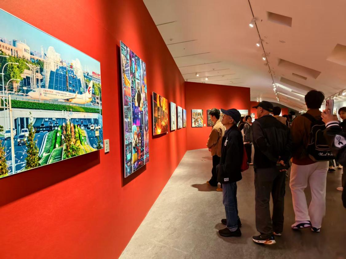 活动中,策展人邹森为展览参观者提供了专业的讲解,不仅讲解了作品中的构图技巧和光影运用,还深入研究了创作者如何以镜头为笔,在一幅小画面中适应时代和社会风貌的变迁。主展区,邹森特意停下来,带领大家近距离感受展览形式变换的巧思:作品尺寸的变换、冷暖色调的搭配,给展览带来了视觉冲击和思绪波澜;安装打破了障碍传统相框。面对毫无意义的城市发展主题作品,观众仿佛置身于城市变迁的真实场景中,艺术感染力显着增强。