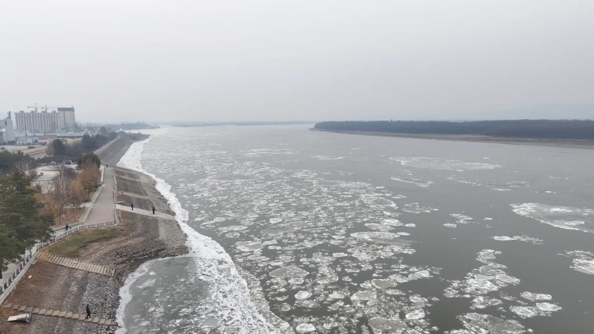 黑龙江中俄边境河呼玛河段进入漂冰季 冬季奇观