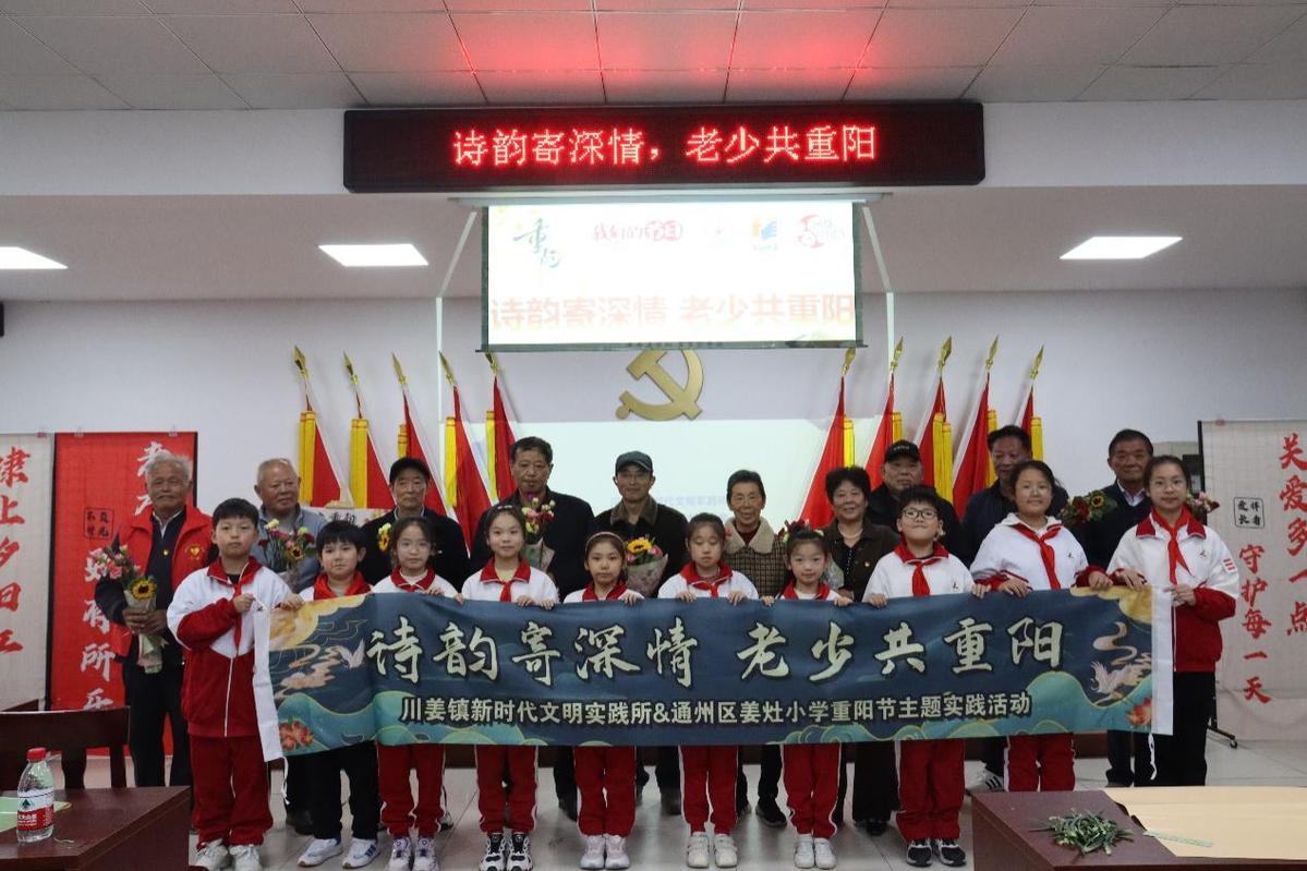 金风沁爽,菊花芬芳,九庆双庆的温暖透着银心。为大力弘扬中华民族爱老尊老、孝顺父母的传统美德,营造文明祥和的乡村氛围,南通市通州区川江镇新时代文明实践办公室和通州区江枣小学,以诗为媒介,以鲜花抒情,老幼携手互动,谱写了尊老敬老的动人篇章。