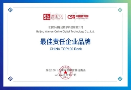 11月26日,2025第九届CSR中国教育排行榜“最佳企业品牌百强排行榜”正式发布。北京外研在线数字科技有限公司(以下简称“外研在线”)连续六年上榜,并荣获第九届中国教育排行榜“最佳责任企业品牌”。